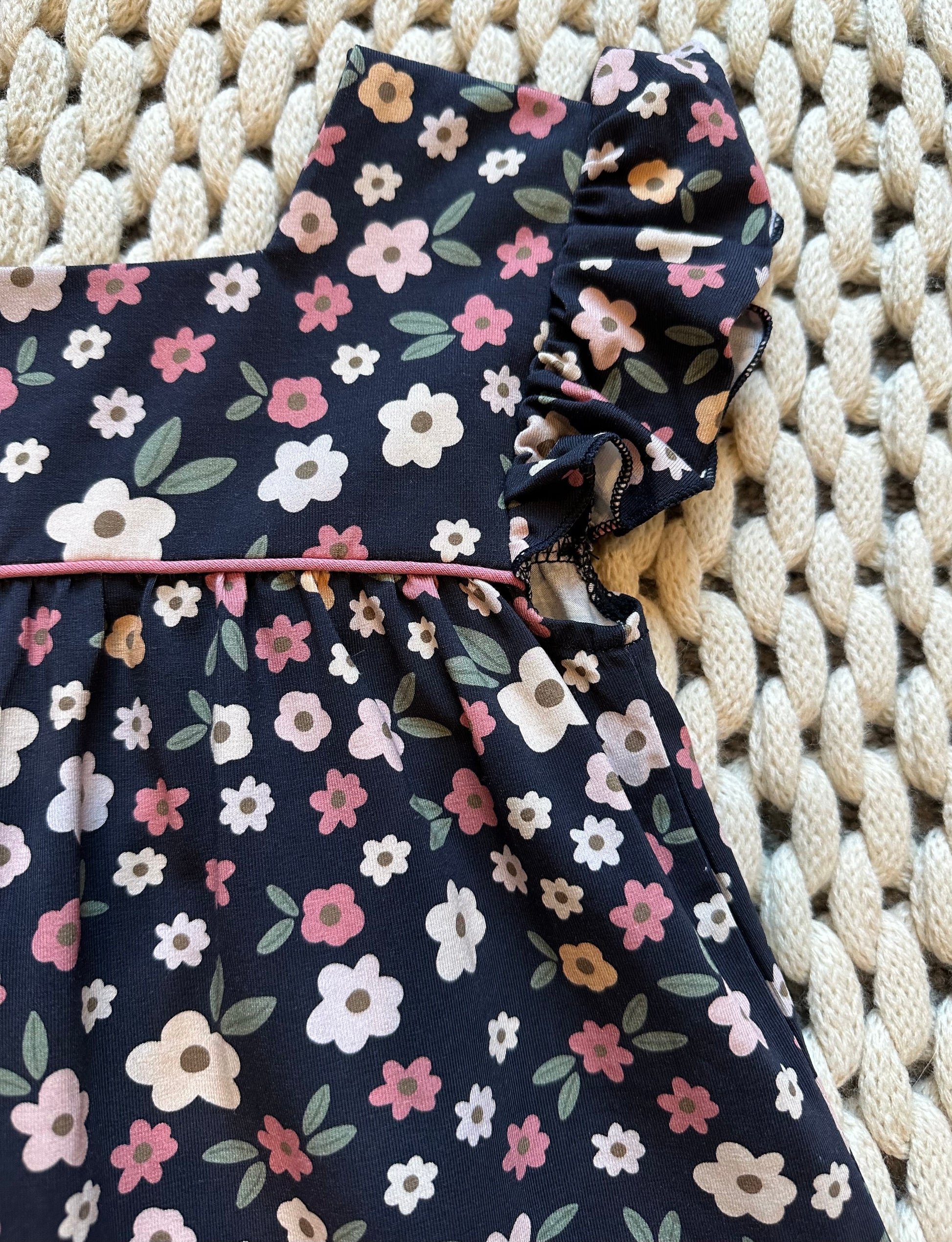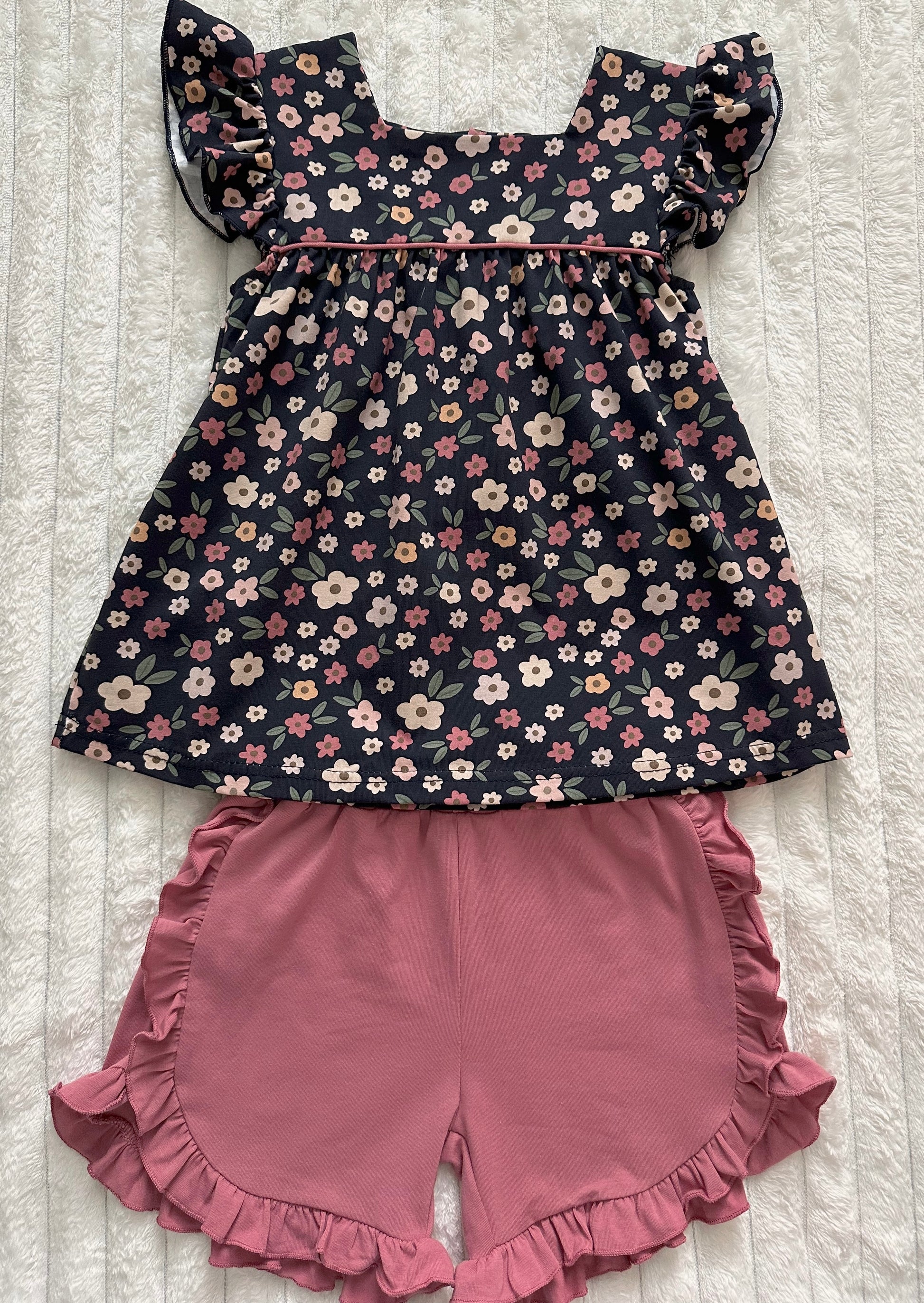 Get ready for the “ber” months with this adorable floral short set. The top has flutter sleeves and a button closure on the back. The shorts have ruffles and are thicker for better durability with an elastic waist band.
