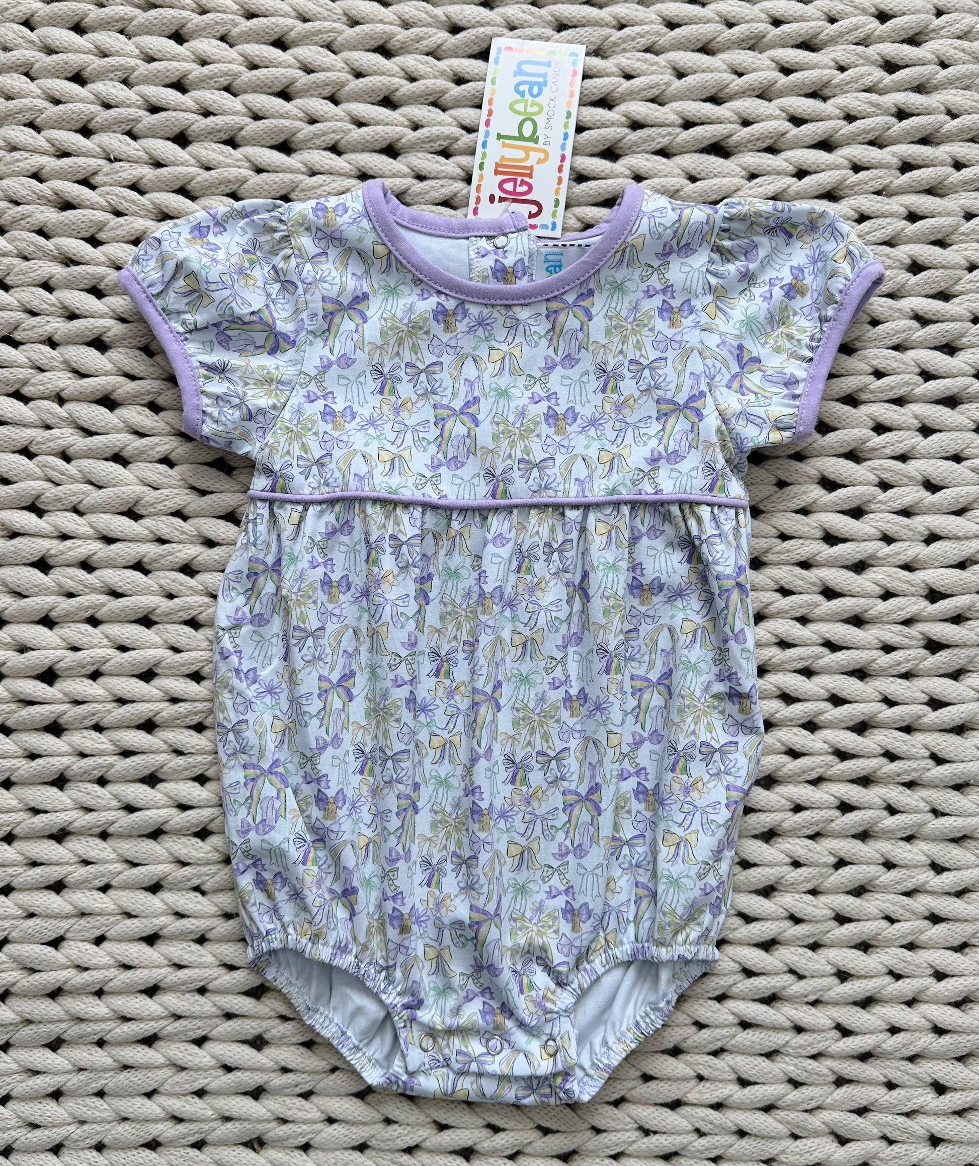 Get ready to party with the Mardi Gras Bow Bubble! This fun and playful bubble features a the sweetest bow print pattern. Perfect for celebrating the festive season. Don't forget to check out the matching sister outfits in the Mardi Gras Bow Collection for double the fun. Let the good times roll!