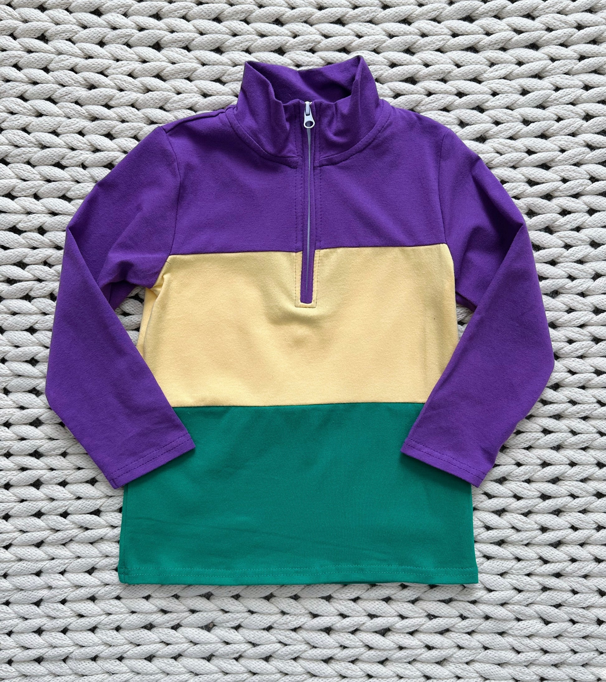 It's time to celebrate in the Mardi Gras Colorblock Pullover. Fun & festive, it will have your little one ready to party all day long. Matching sibling options are available. Material: Knit. 95% Cotton 5% Spandex.